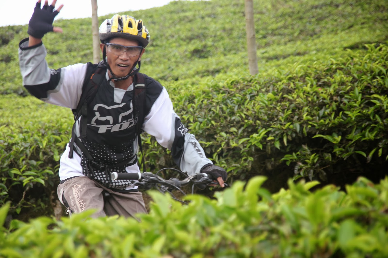 Pk.08:25 setelah seluruh sepeda siap untuk ditunggangi, rombongan mulai menanjaki jalan di kebon teh.